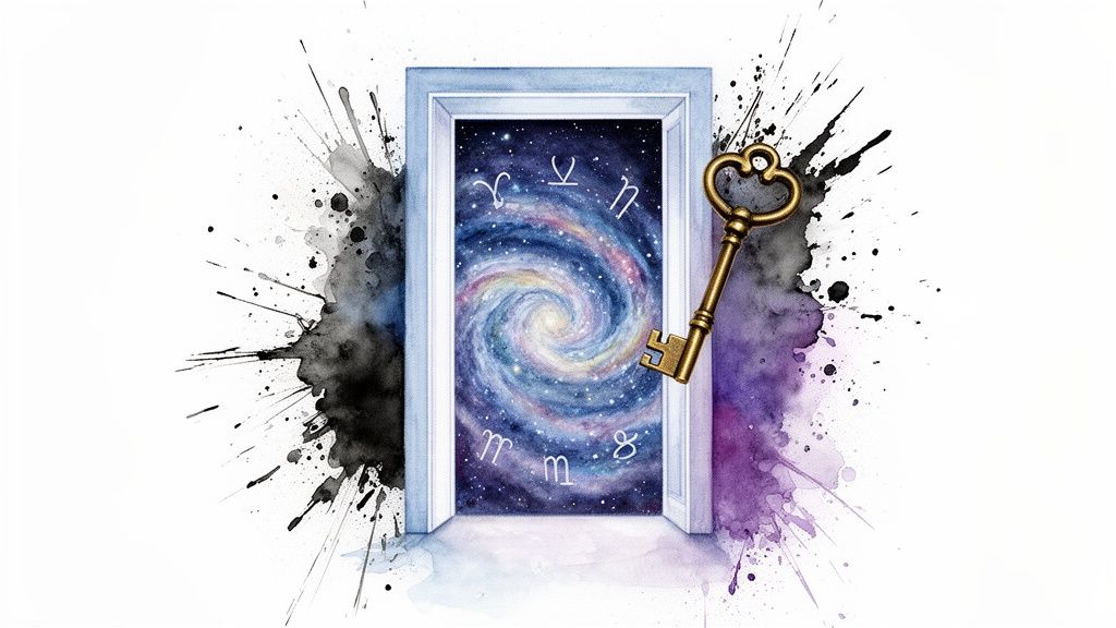 Pour vraiment cerner ce qu'est l'astrologie maison 12, il faut l'imaginer comme une pièce à double fond. D'un côté, on y trouve nos épreuves, nos blocages intérieurs et ces angoisses diffuses qu'on n'arrive pas à nommer. C'est le lieu secret où se cachent les schémas inconscients qui nous freinent, parfois depuis toujours.